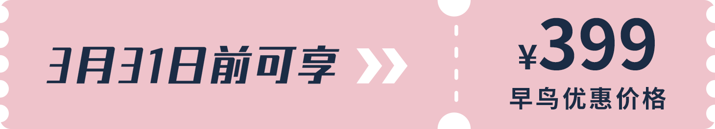 399元早鳥票優惠倒計時10天! |