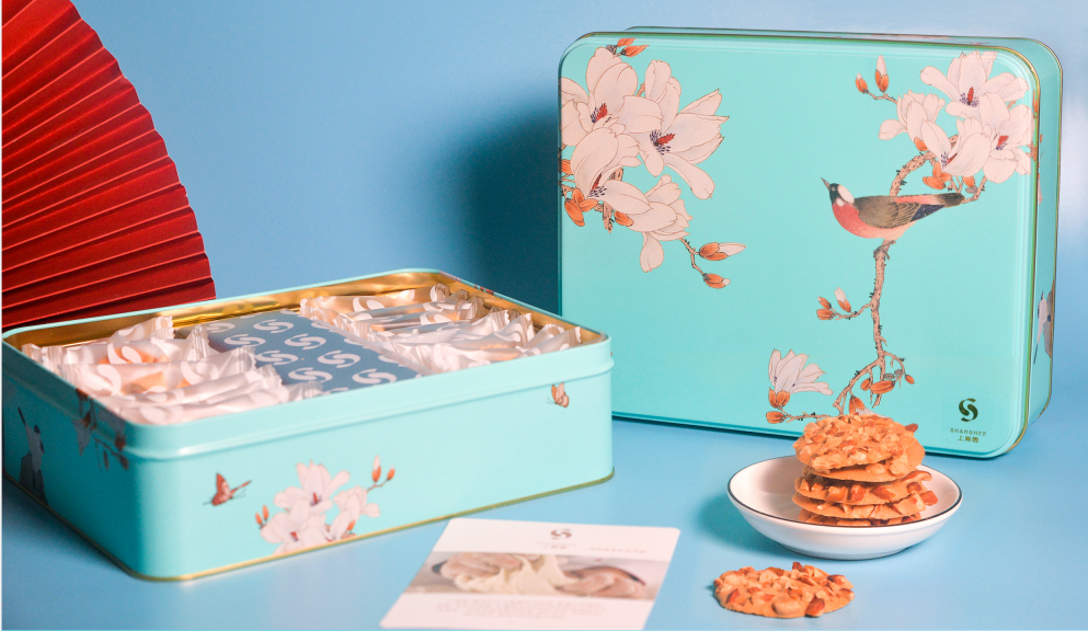 包裝整體為鍍錫鐵盒身,采用金屬印刷和沖壓工藝,使之有很強的視覺沖擊力及分量感。秉持傳統工藝的傳承,同時結合研發創新的理念,原材料的使用都經過嚴格的篩選,“優質的原材料加上食品人的嚴謹與標準,才能打造出好的產品。”